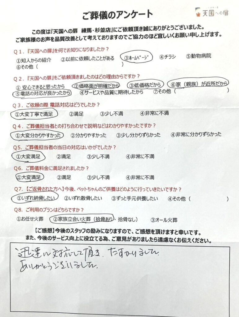 【迅速に対応して頂き、たすかりました。ありがとうございました。】